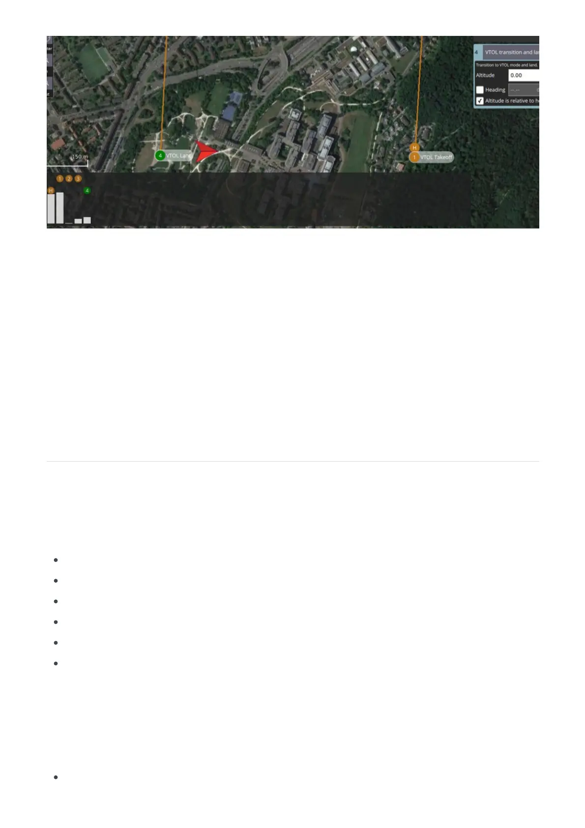 The image above shows a simple mission that starts with a takeoff, flies through two waypoints and then
