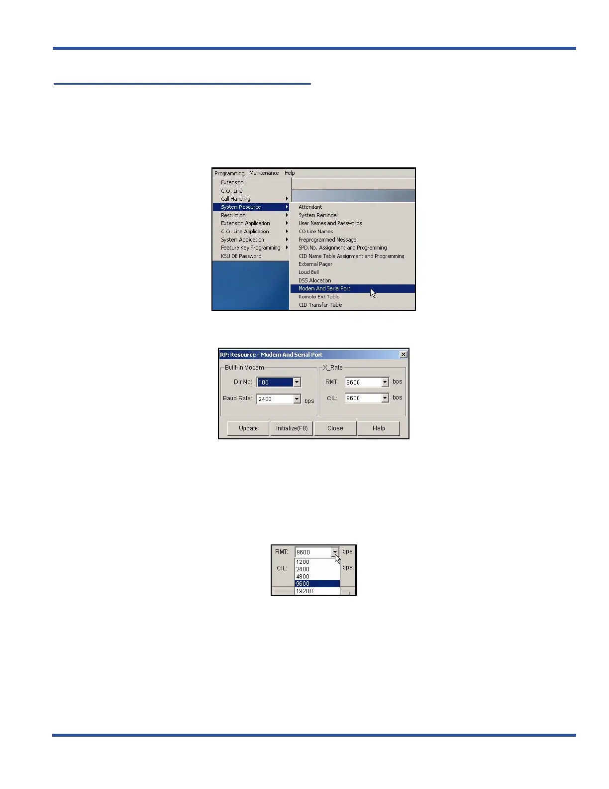 1) Go to ProgrammingXSystem ResourceXModem and Serial Port to display the Modem and Serial Port