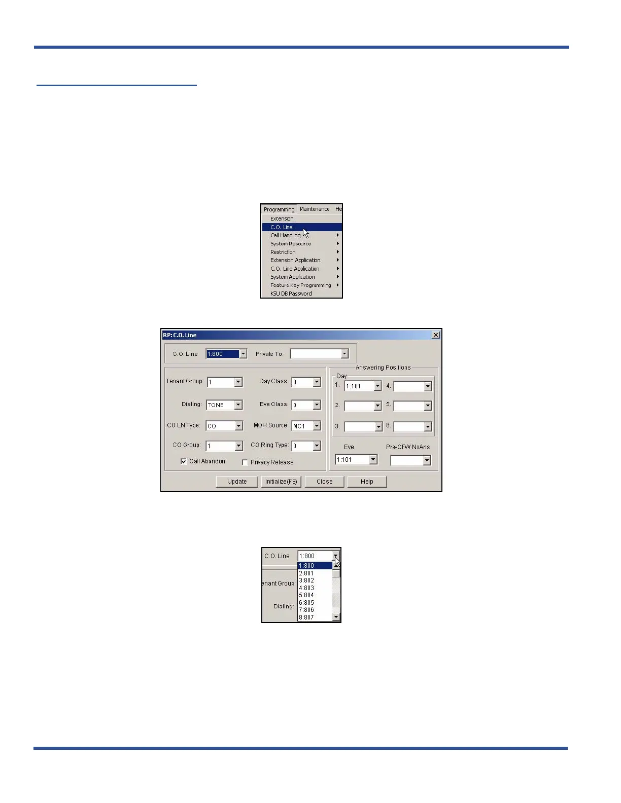 1) Go to ProgrammingXC. O. Line to display the C. O. Line screen.