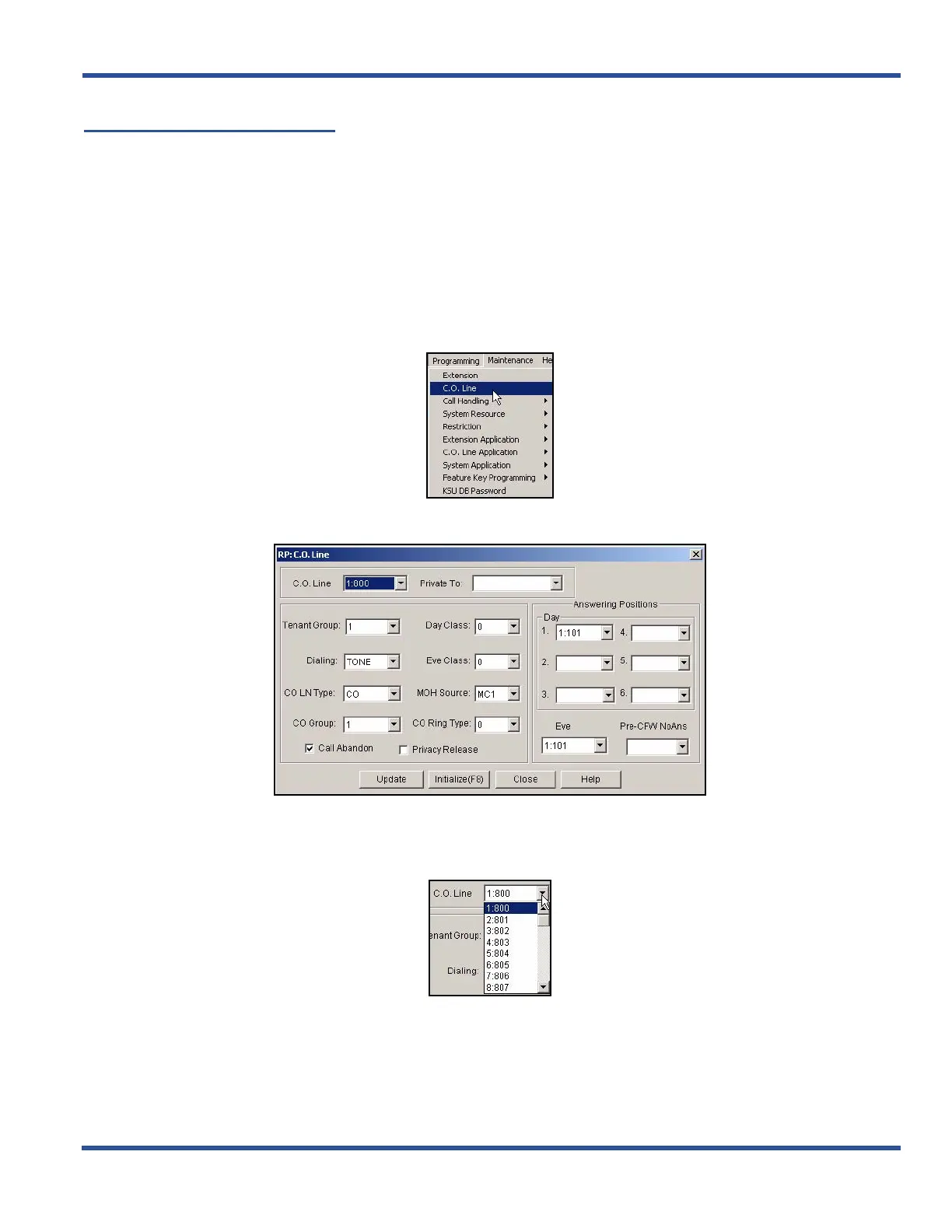 1) Go to ProgrammingXC. O. Line to display the C. O. Line screen.