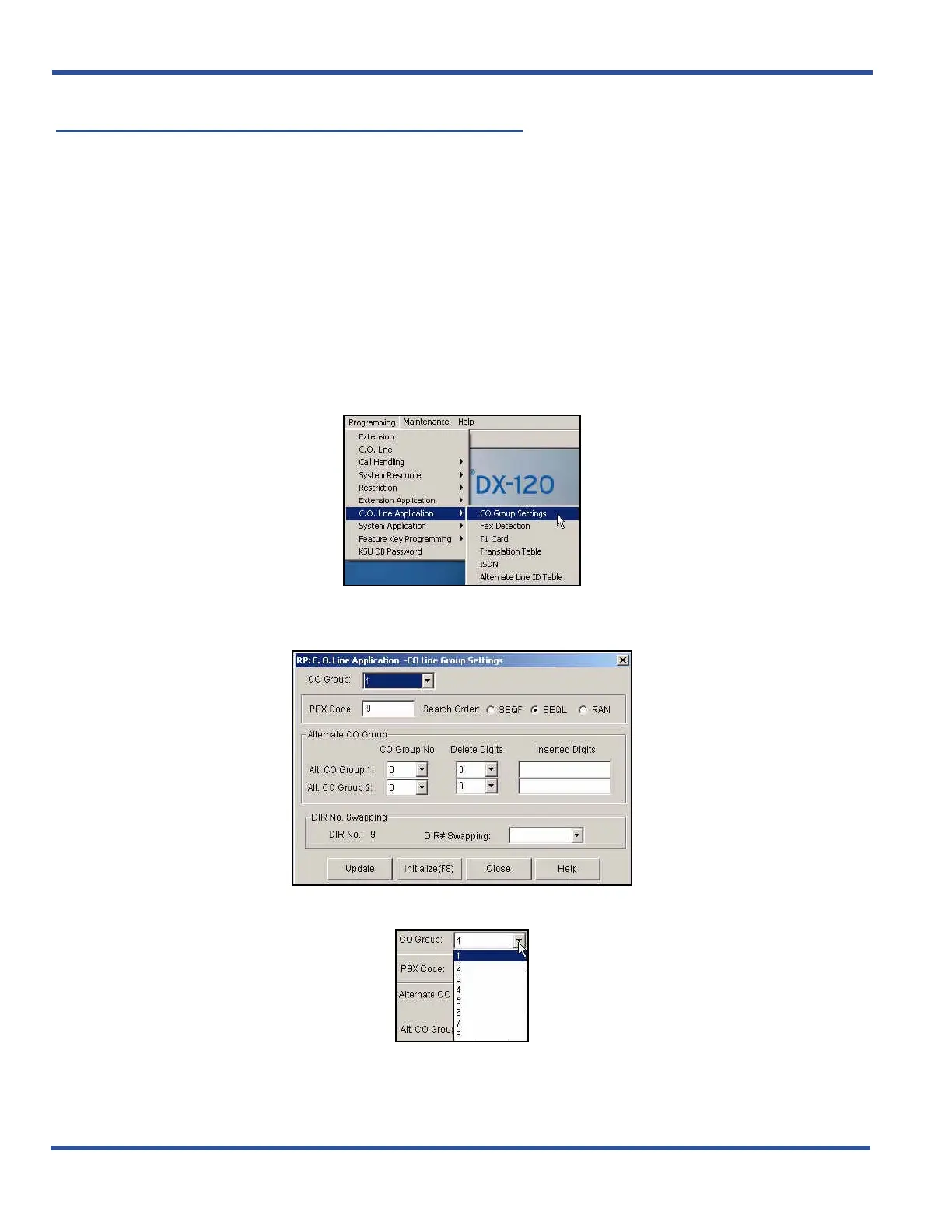 Setting Up the Alternate CO Line Group via PC-DBA (continued on next page)