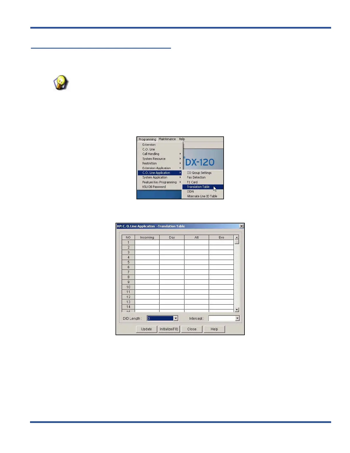 1) Go to ProgrammingXC.O. Line ApplicationXTranslation Table to display the C.O. Line Application -