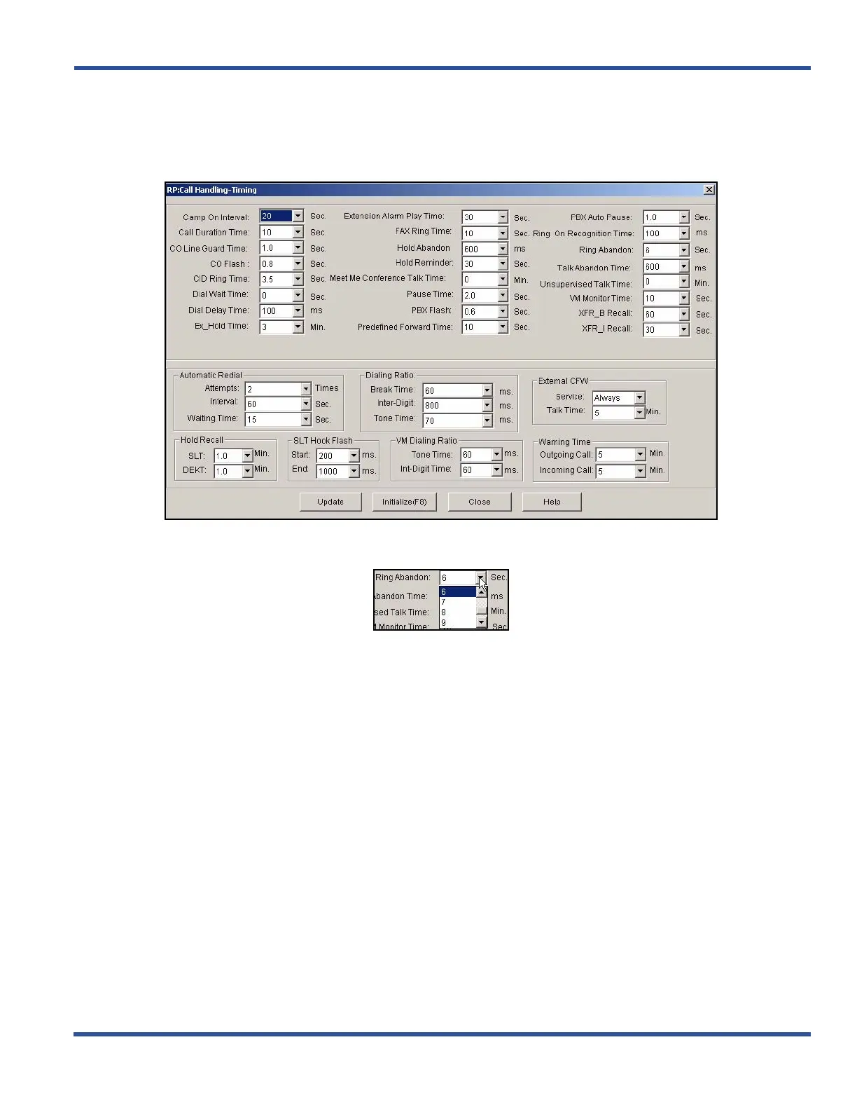2) Select how long you want the system to wait for voltage (ring) from the CO trunk before dropping the call.