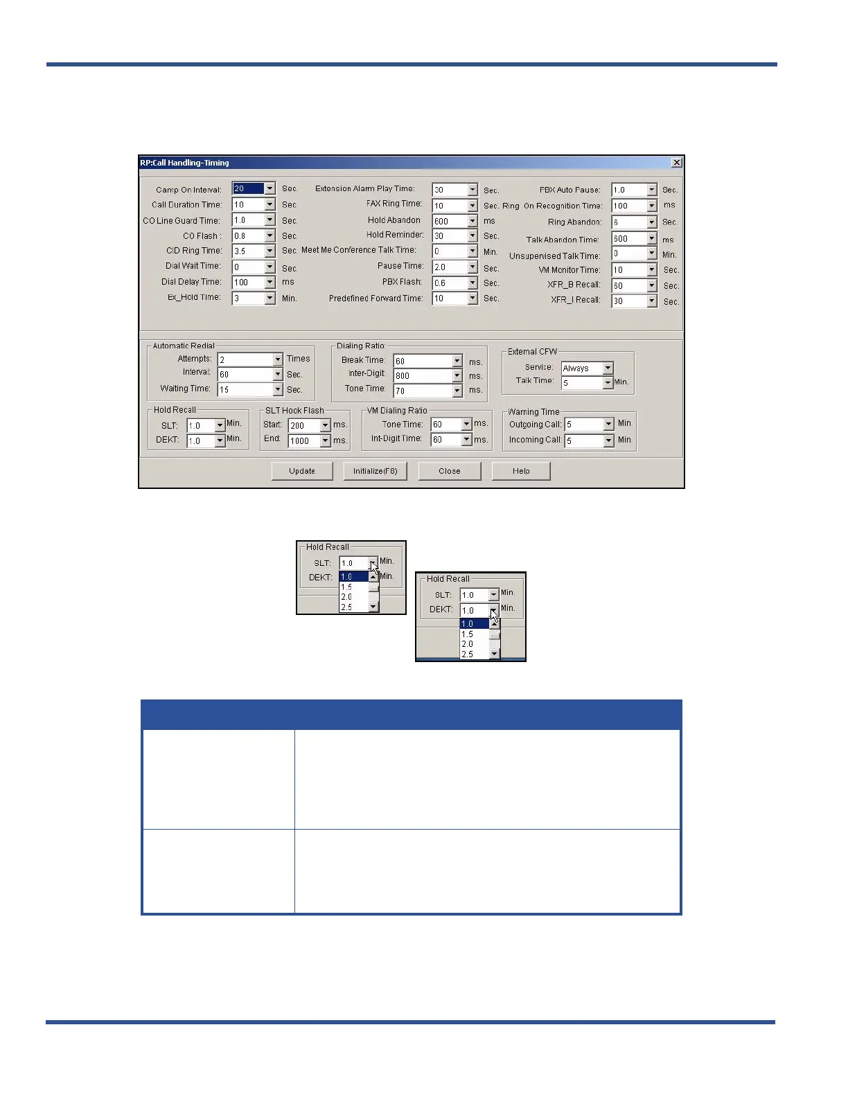 Setting Up Hold Recall via PC-DBA (continued on next page)