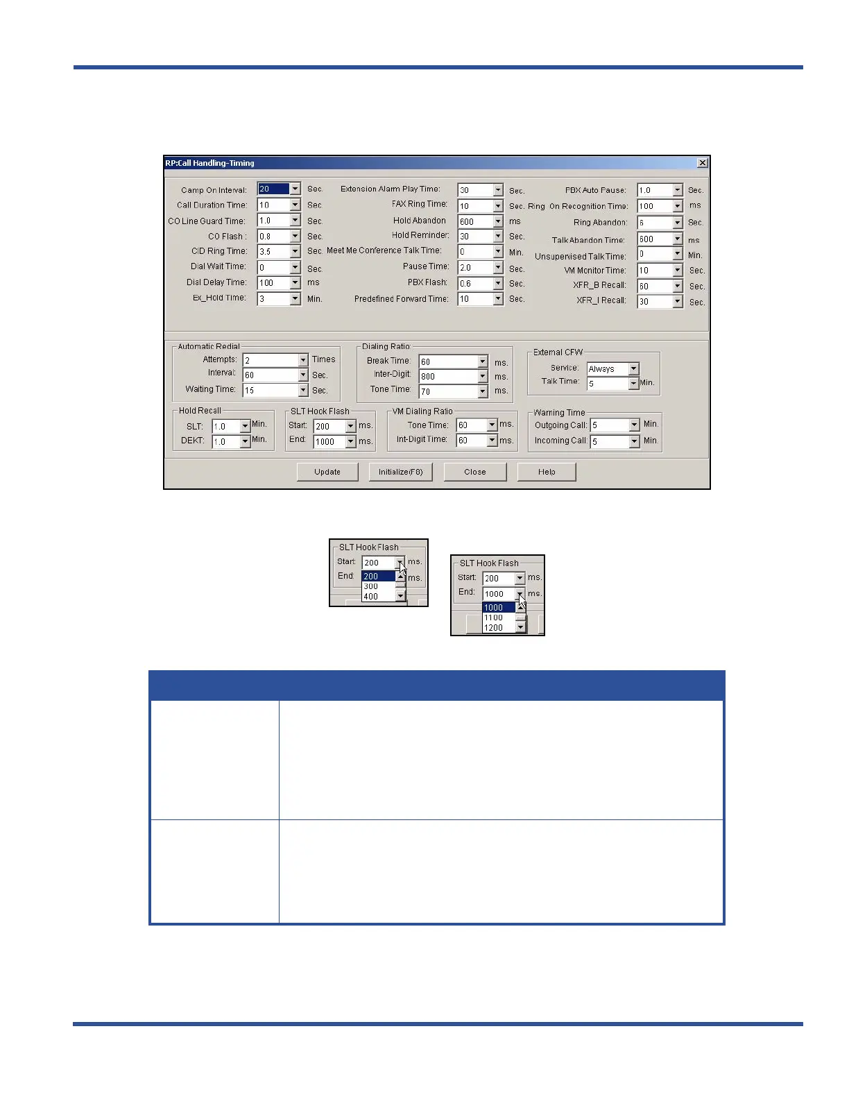 From the SLT Hook Flash fields in the lower left area of the screen: