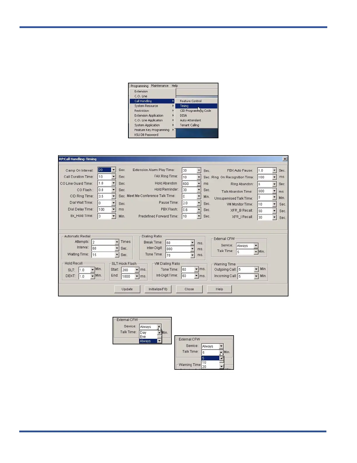 1) Go to ProgrammingXCall HandlingXTiming to display the Call Handling—Timing screen.