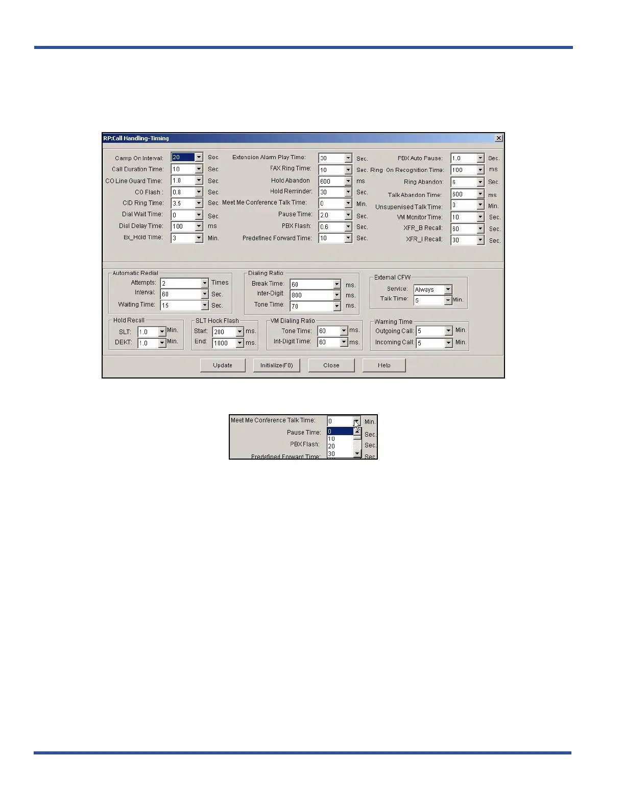 Setting Conference Talk Time Intervals and Confernce Tones via PC-DBA (continued on next page)