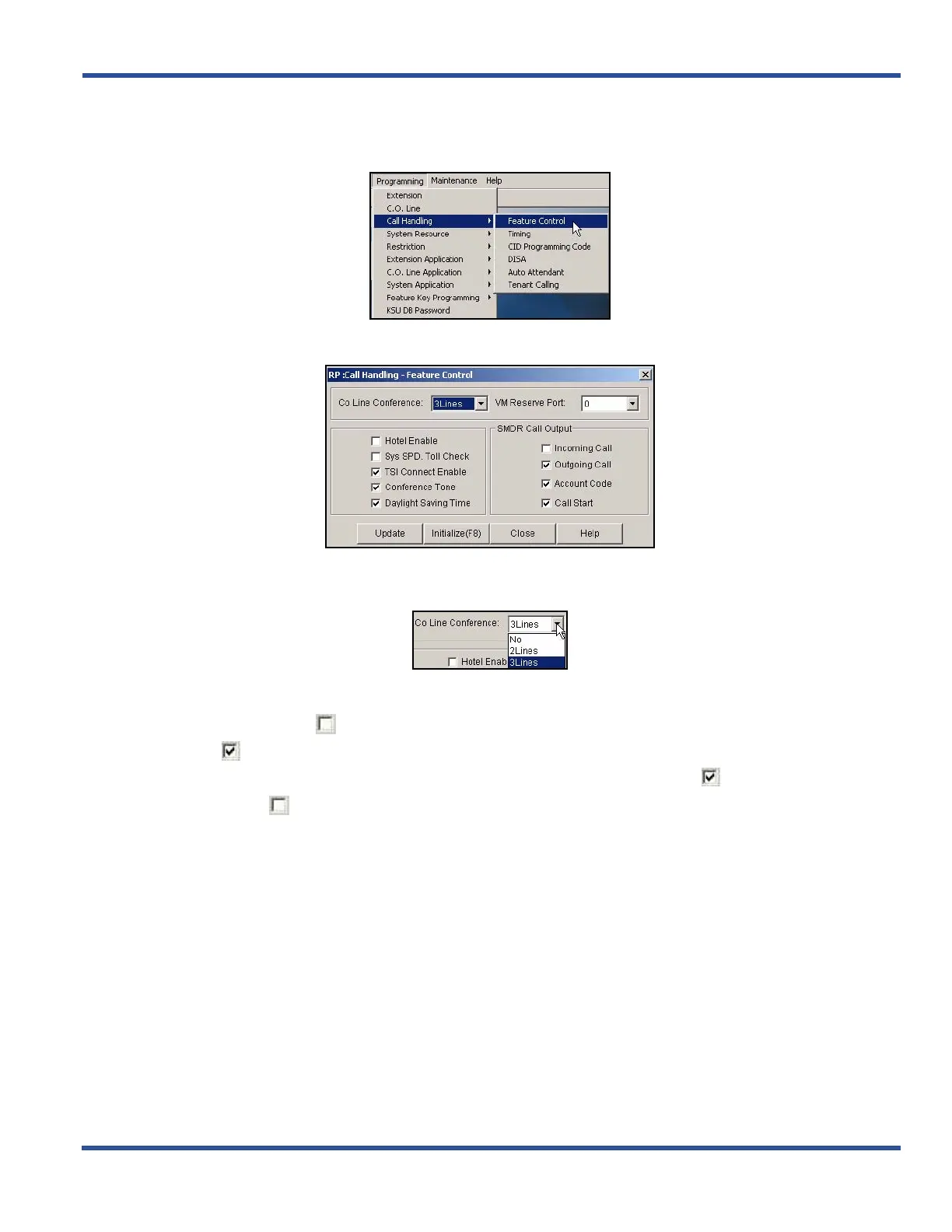 2) Select No, 2Lines, or 3Lines from the CO Line Conference field.