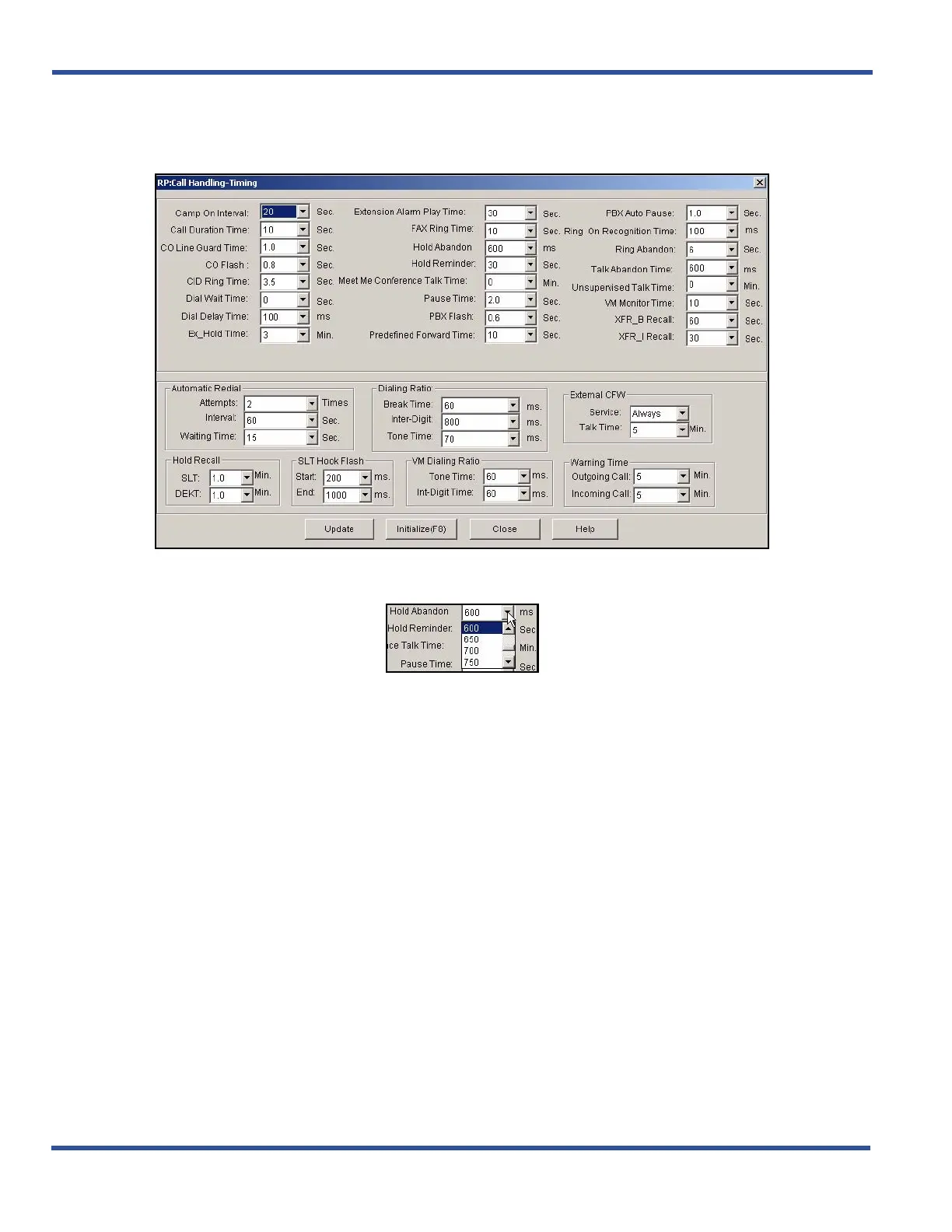 Setting Hold Abandon Time Interval via PC-DBA (continued)