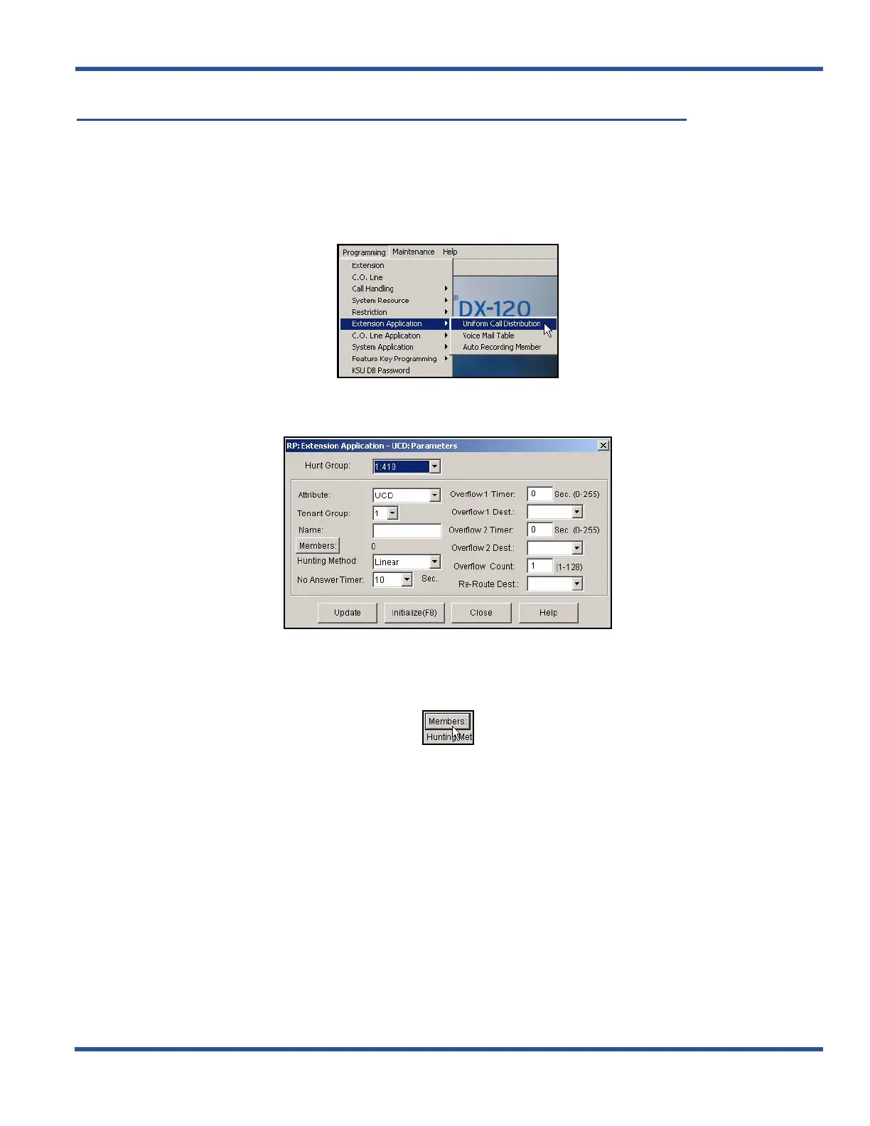 1) Go to ProgrammingXExtension ApplicationXUniform Call Distribution to display the UCD: Parameters