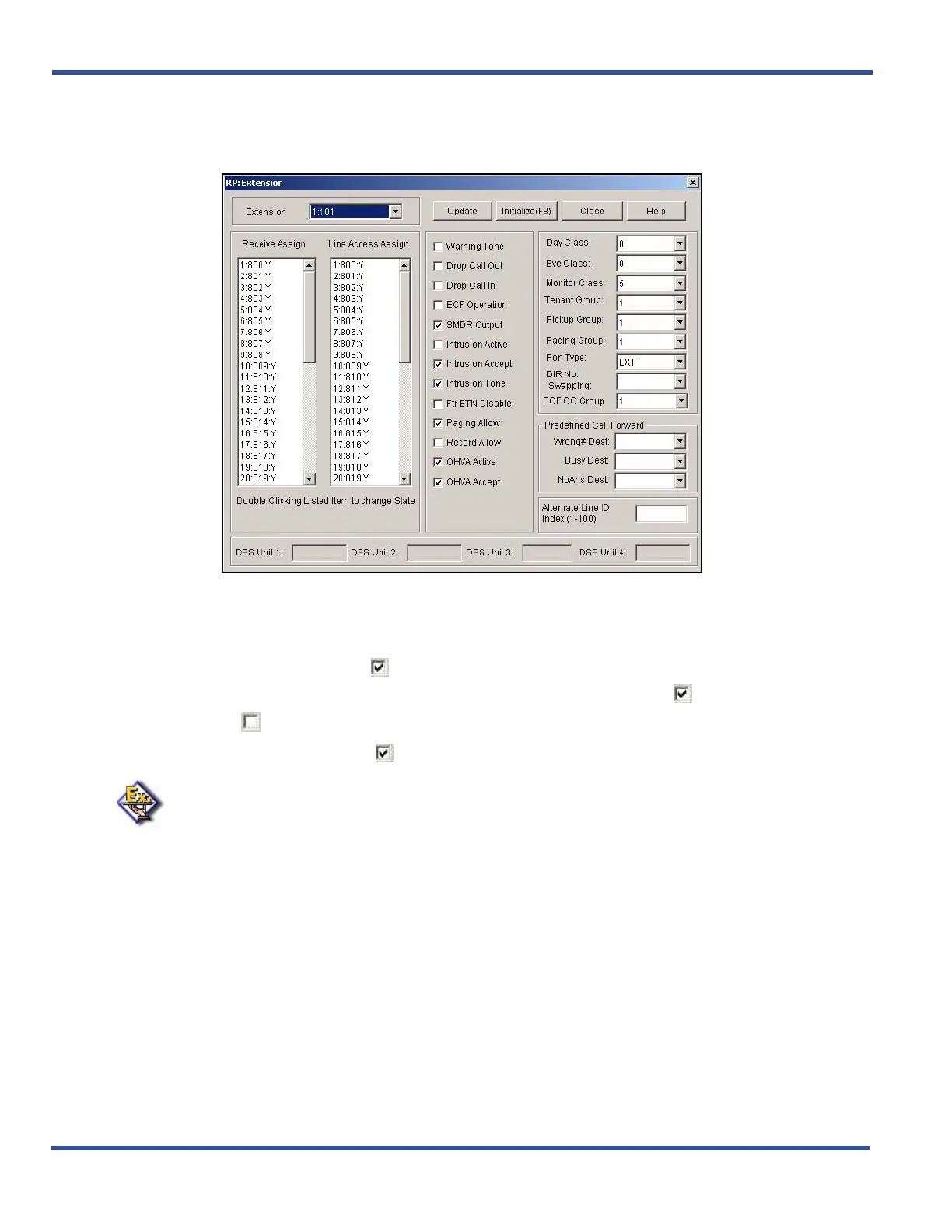 Setting Up Off Hook Voice Announce via PC-DBA (continued on next page)