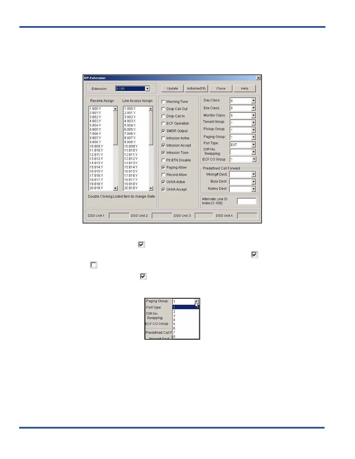 • Clicking on this box toggles the setting between yes/enable (a checkmark ) and no/disable (no