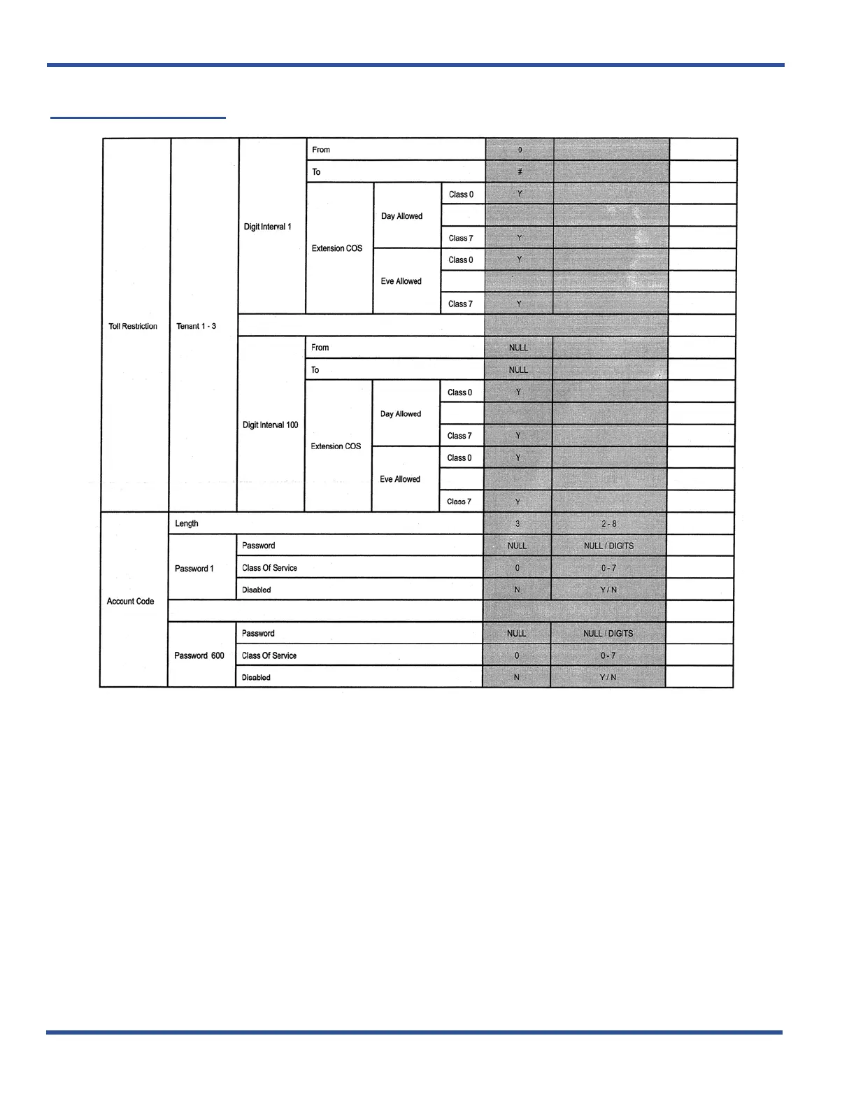 Vertical comdial DX-120 - Toll Restrictions