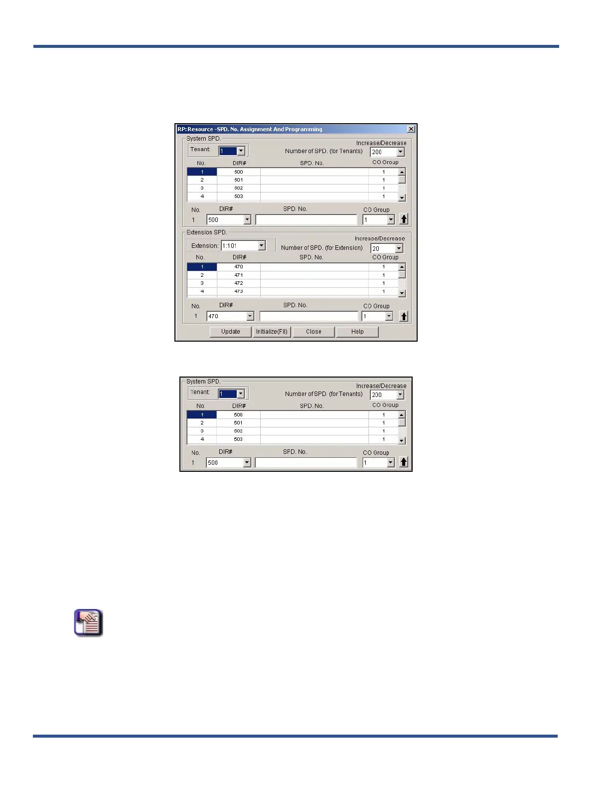 1) Go to ProgrammingXSystem ResourceXSPD.No.Assignment and Programming to display the