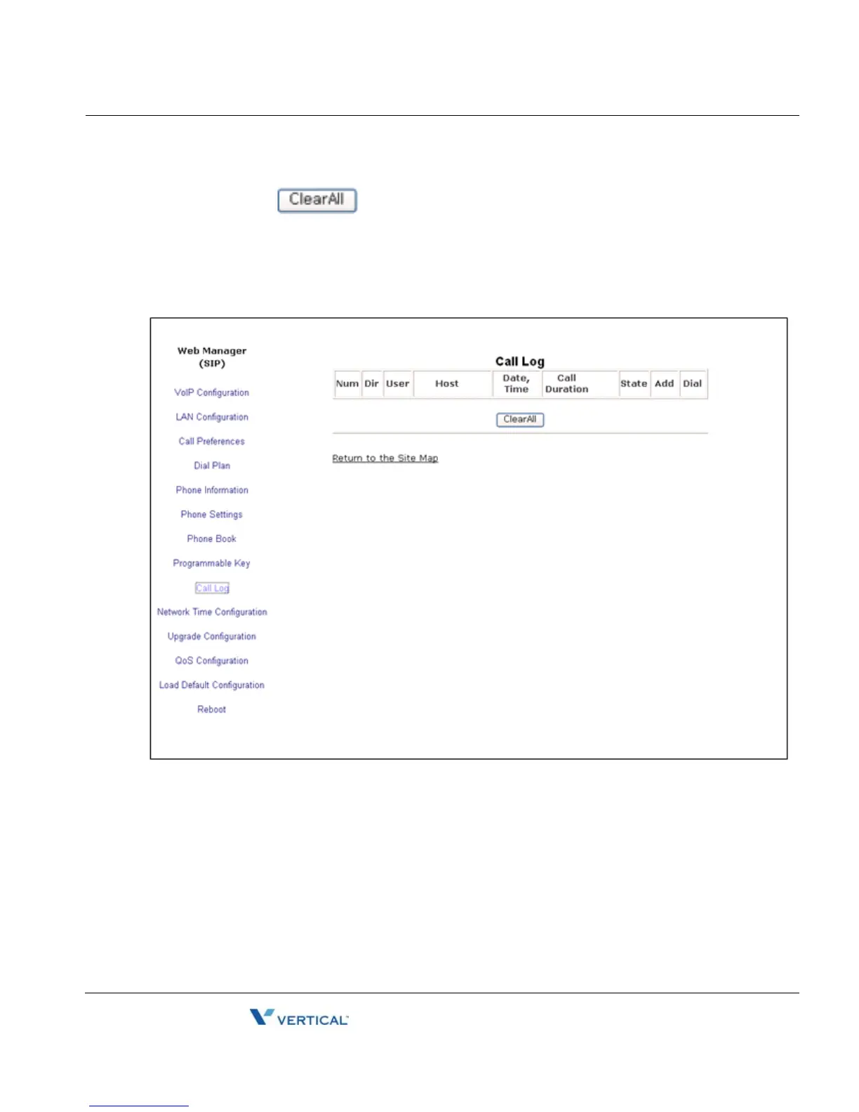 The Call Log is a list of all calls (incoming, outgoing or missed) at the extension. The log
