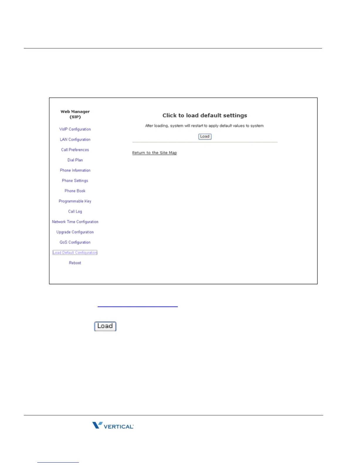 The Load Default page permits the IP Phone configuration to be returned to factory default