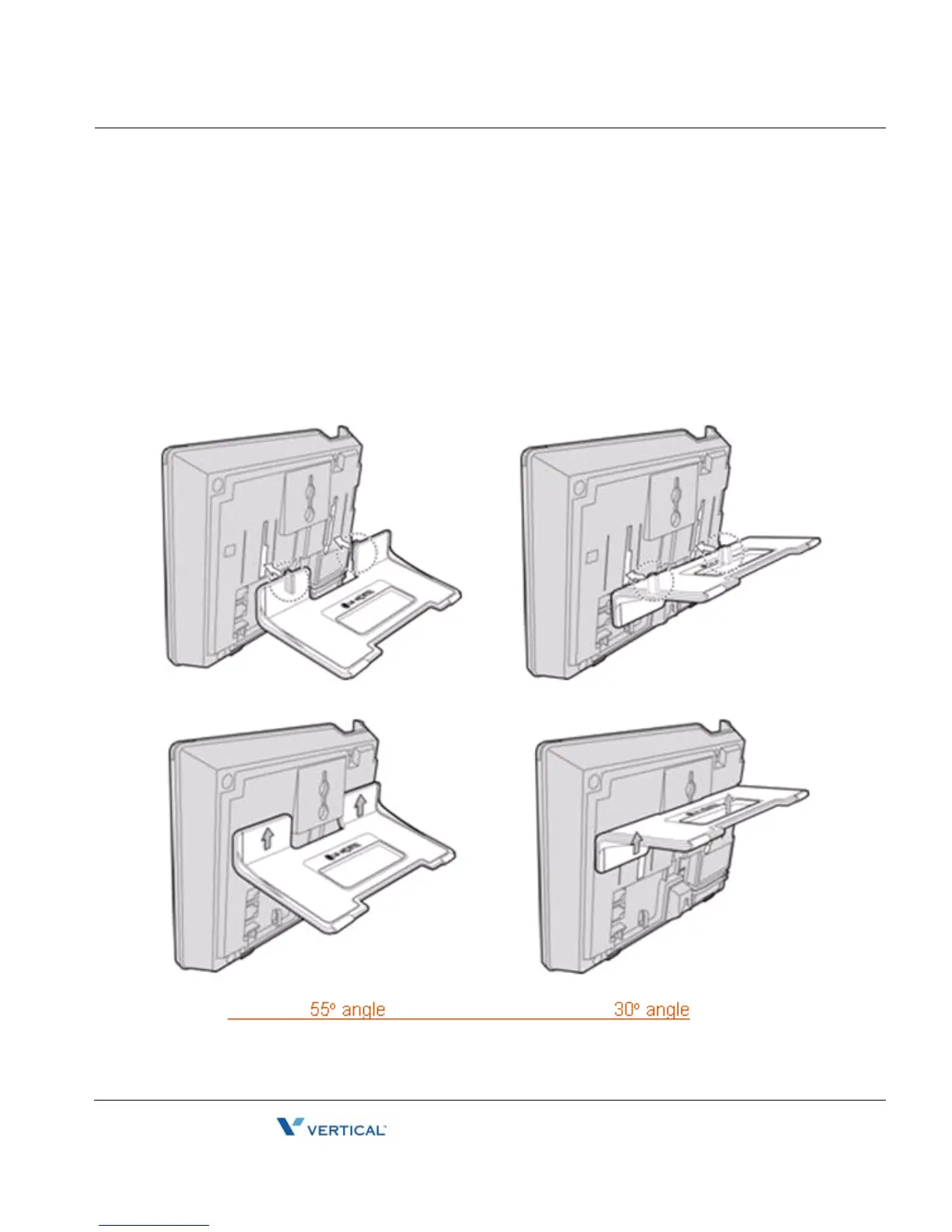 The IP Phone is designed to use a Foot Stand to set the angle of the face of the phone. The