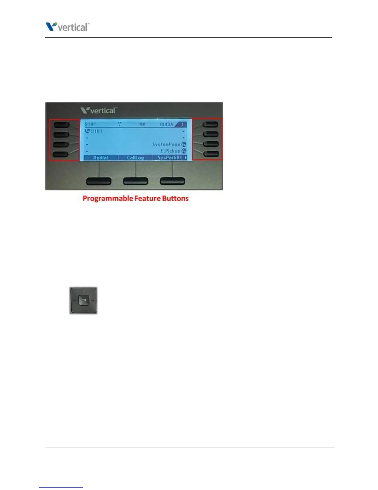 Programmable feature buttons are physical buttons that are programmed by the phone system