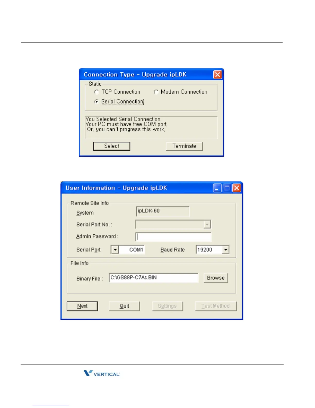Select the port type Serial Connection.