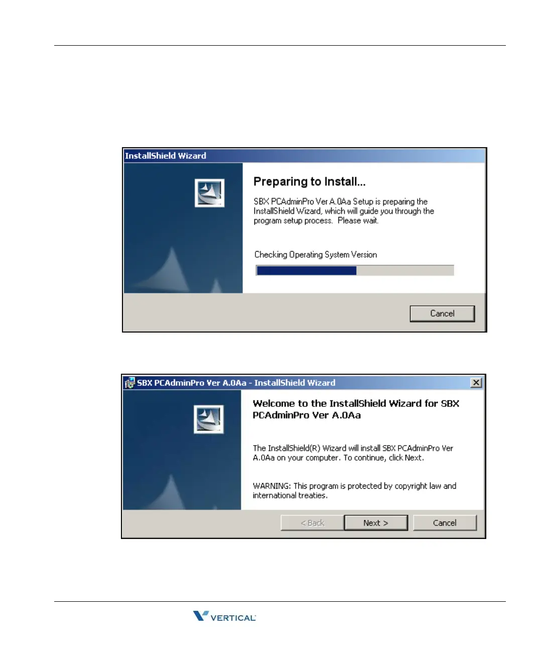 The "Welcome to the Install Shield Wizard for SBX PCAdminPro" window will appear.