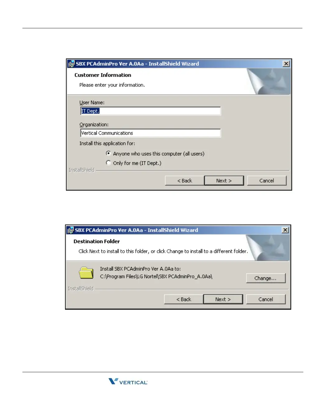 The "Destination Folder" window will appear.
