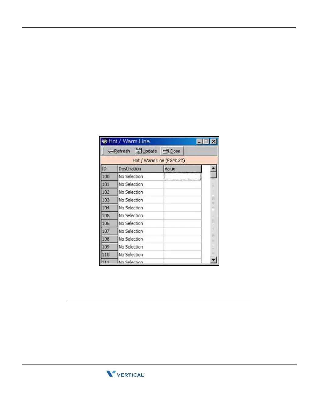 • You will see the list of Hot/Warm line programming. If there is no data, the table will display