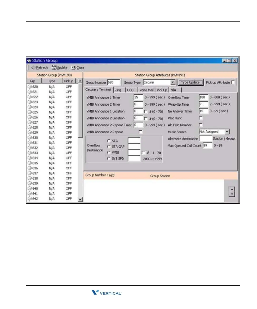 When assigning a station group to any type of hunt group or voice mail group, ring, pick up