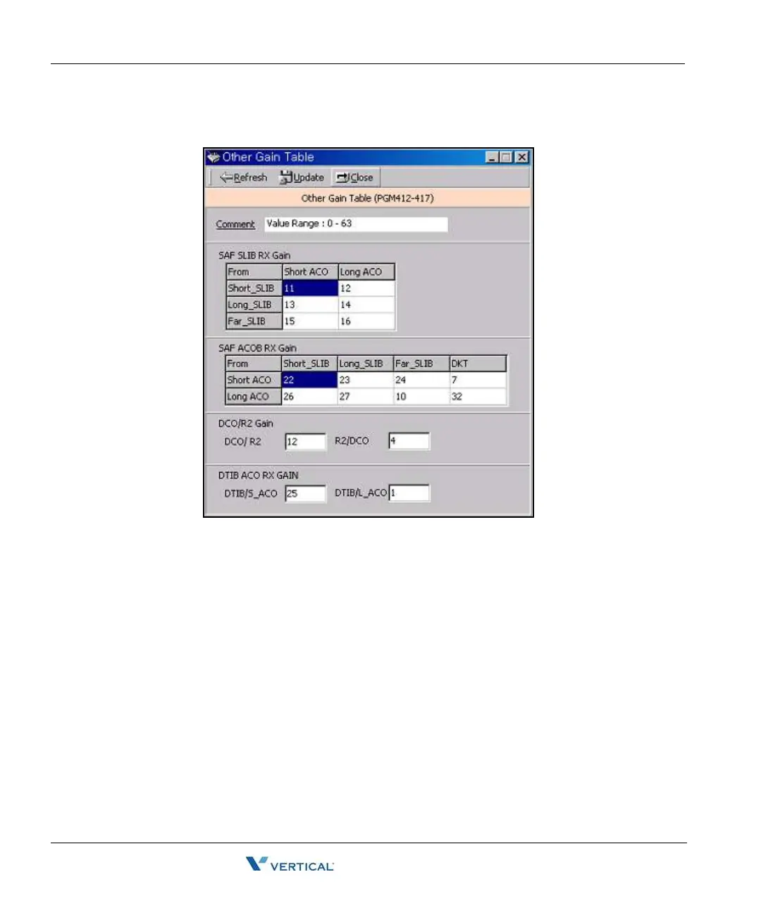 Vertical SBX IP - Other Gain Table (PGM 412-418, PGM 424)