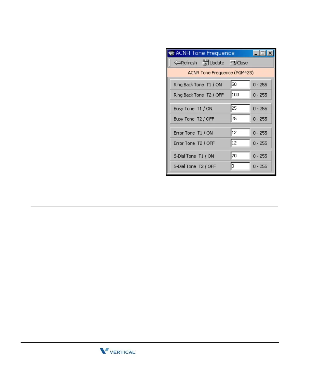 Error Tone 000-255 ON: 012 / OFF: 012 20ms base