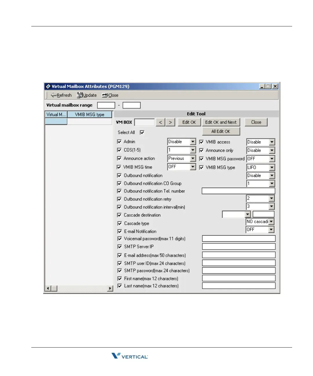 Vertical SBX IP - Virtual Mailbox Attributes (PGM 129)