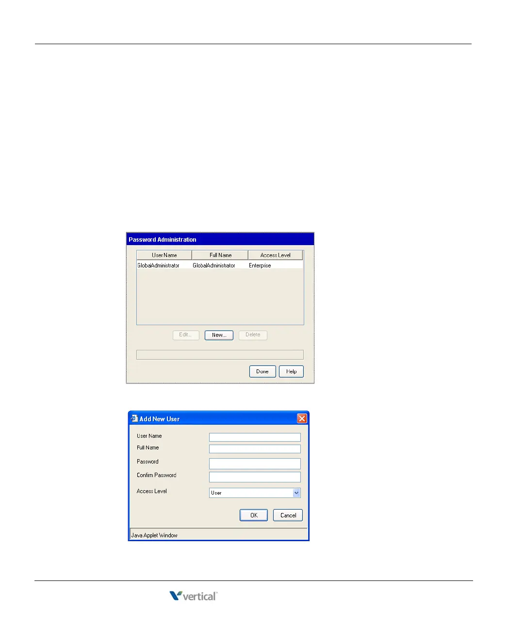 Note: The accounts you create in the Password Administration applet according to the