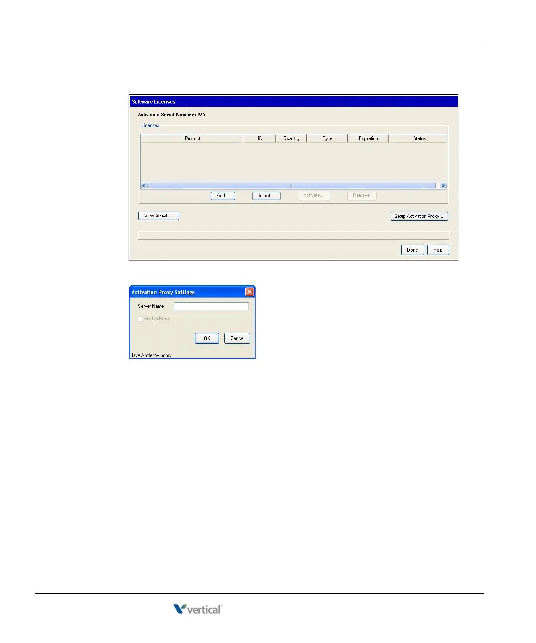 1. In the Software Licenses applet, click Setup Activation Proxy.