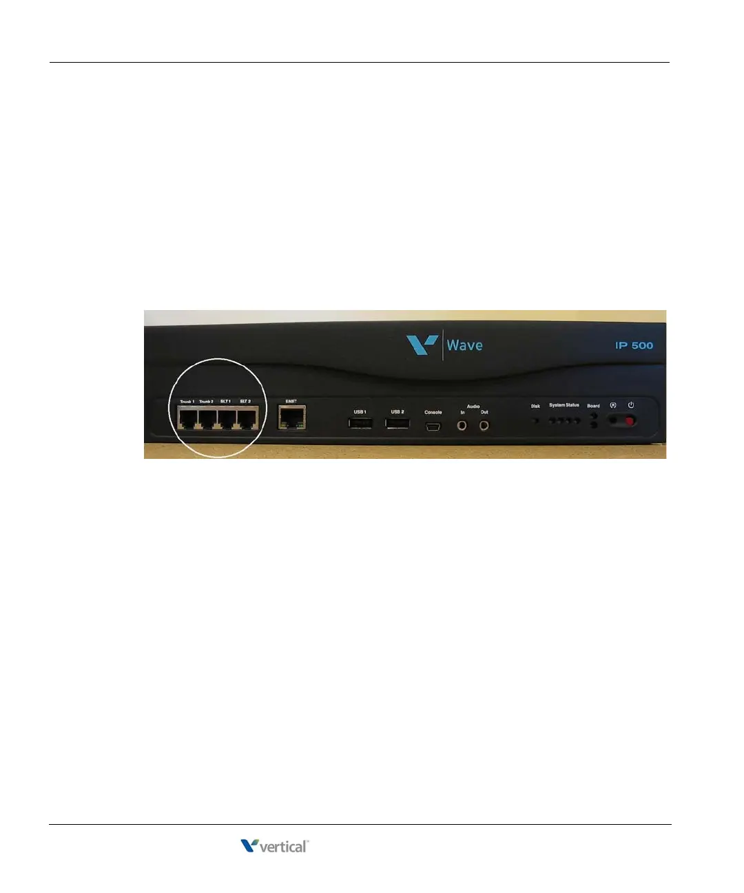 1. Locate the RJ-11 ports (labeled Trunk 1-2 and SLT 1-2) on the ISC2.