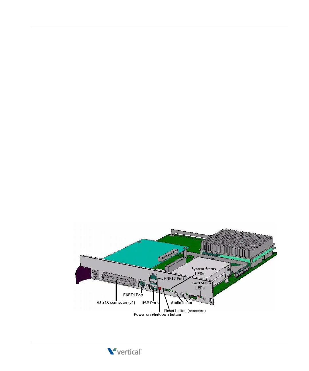 • Status LEDs (described in detail in Appendix C)