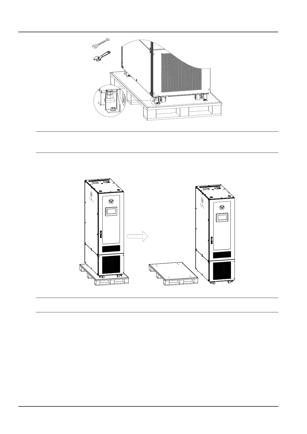 5) Lift the cabinet horizontally, remove the pallet at the bottom, and gently place the cabinets on the horizontal floor