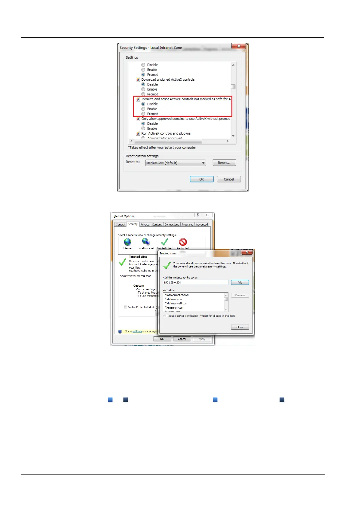 6) Add the IP address of the Intelligent Monitoring Unit to the list of trusted sites, as shown in the Figure 3-32.