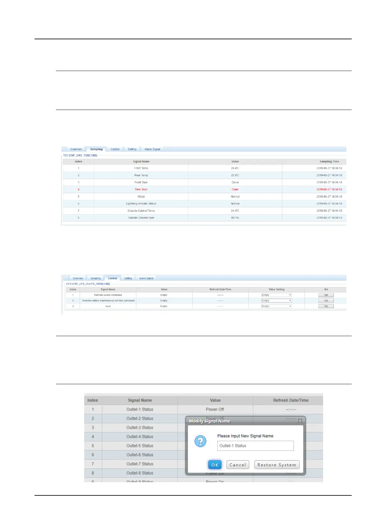 3. Click an Outlet-X status (Outlet-1, Outlet-2, ...) in the signal name column, so that a signal name modification dialog box is