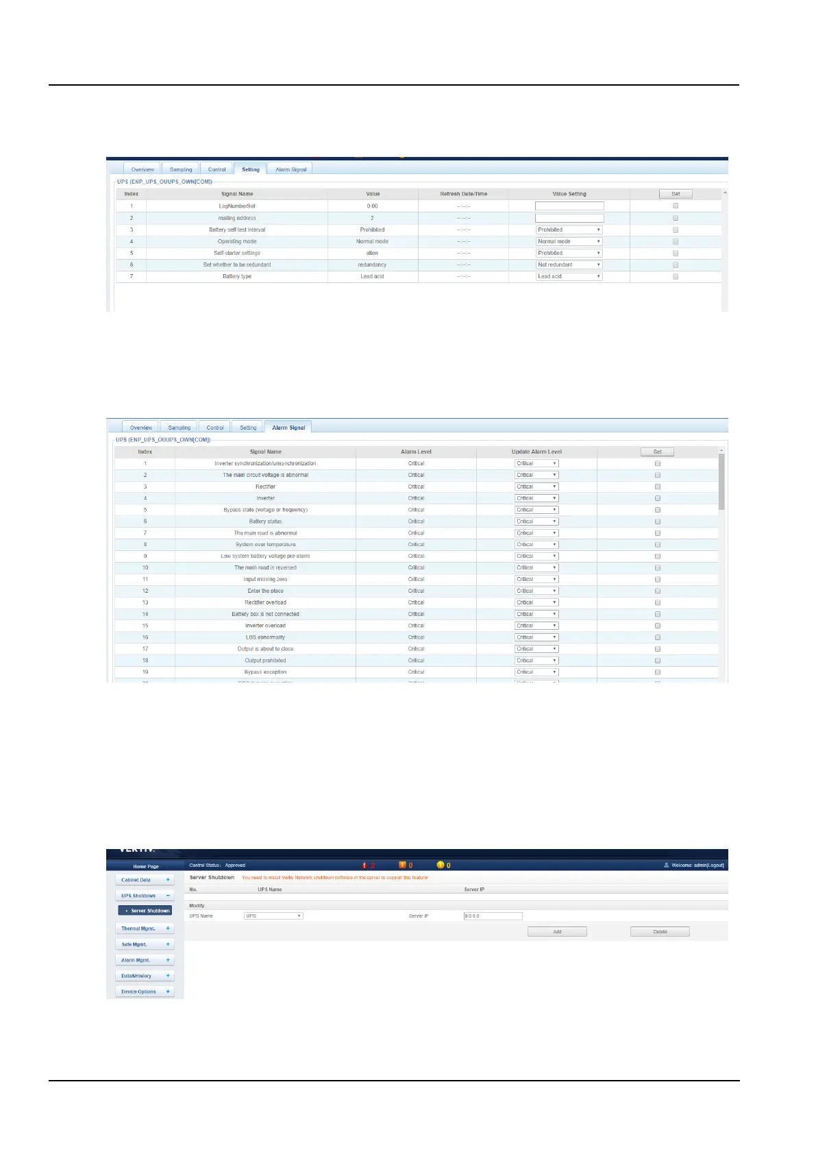 Click the Server Shutdown submenu under the UPS Shutdown menu to pop up the Server Shutdown Settings page