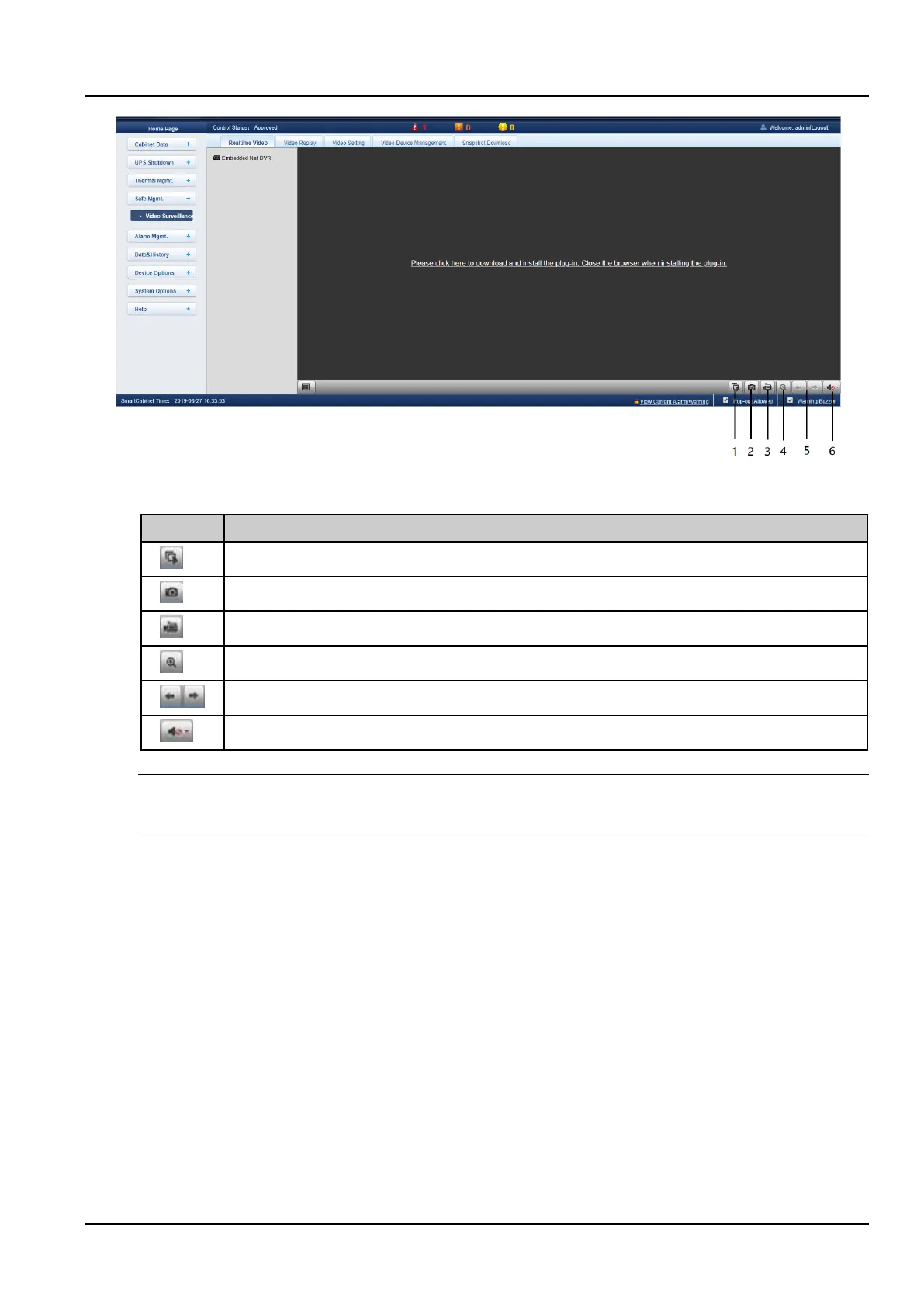 Table 3-1 Realtime Video page icon description