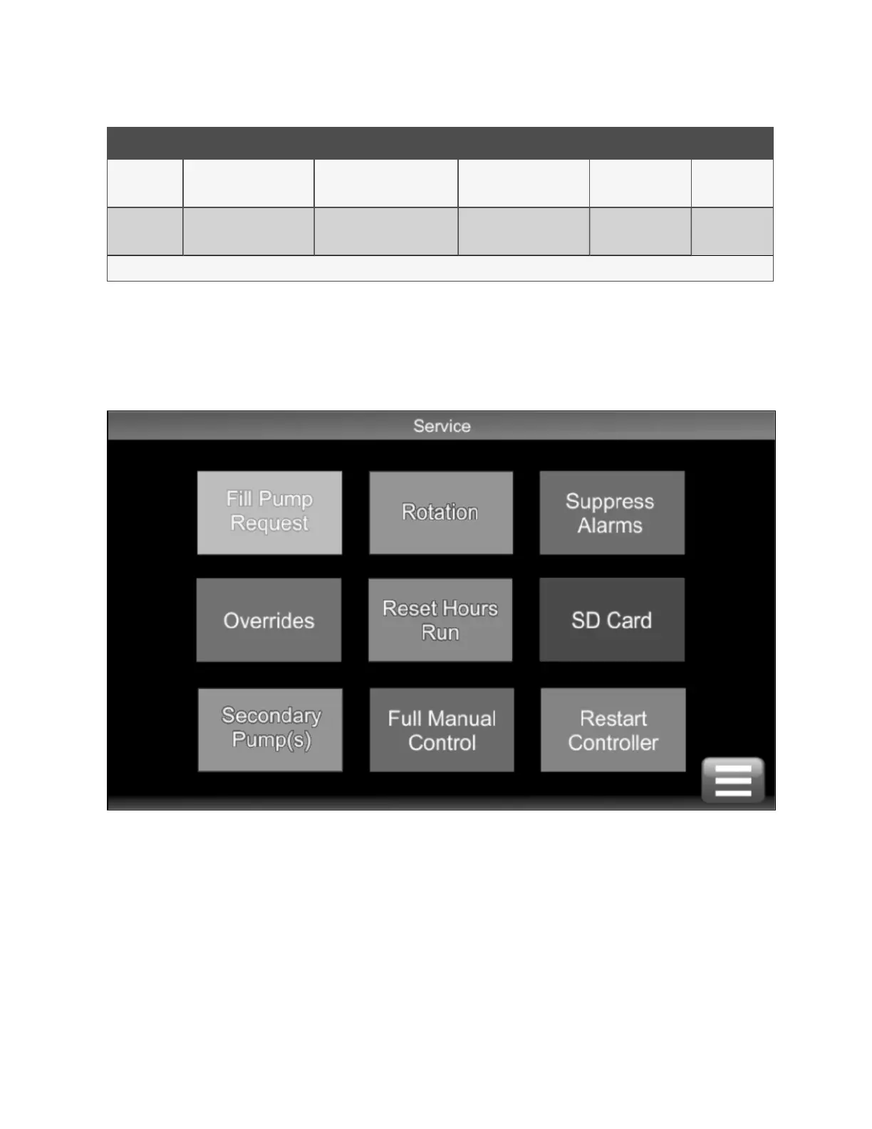 Figure 4.9 Control System Service Screen