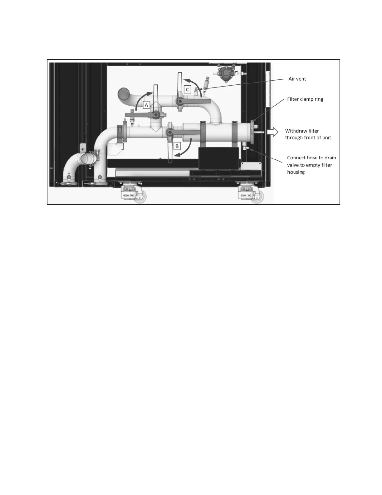 Figure 7.1 Servicing the Primary Filter—Section View from Left Side of Unit