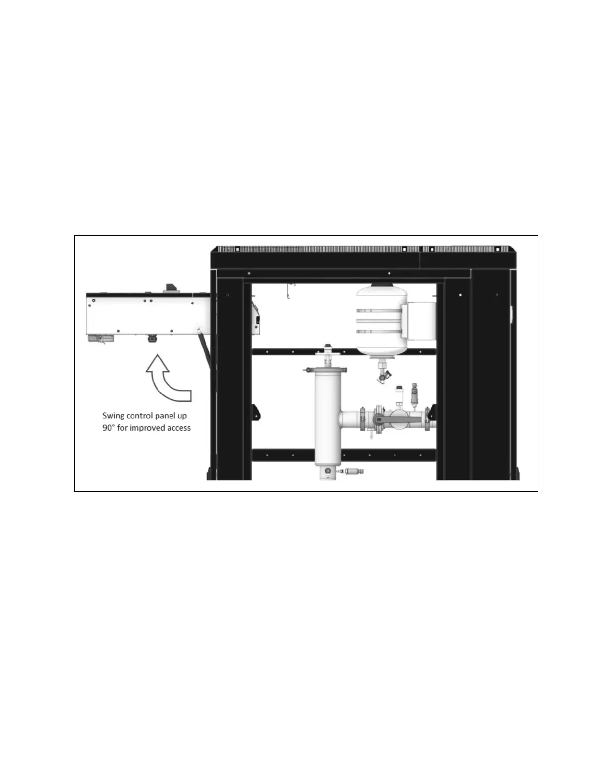 The control panel may be hinged up 90° on gas struts to give improved access to service the secondary filters. See Figure 8.1