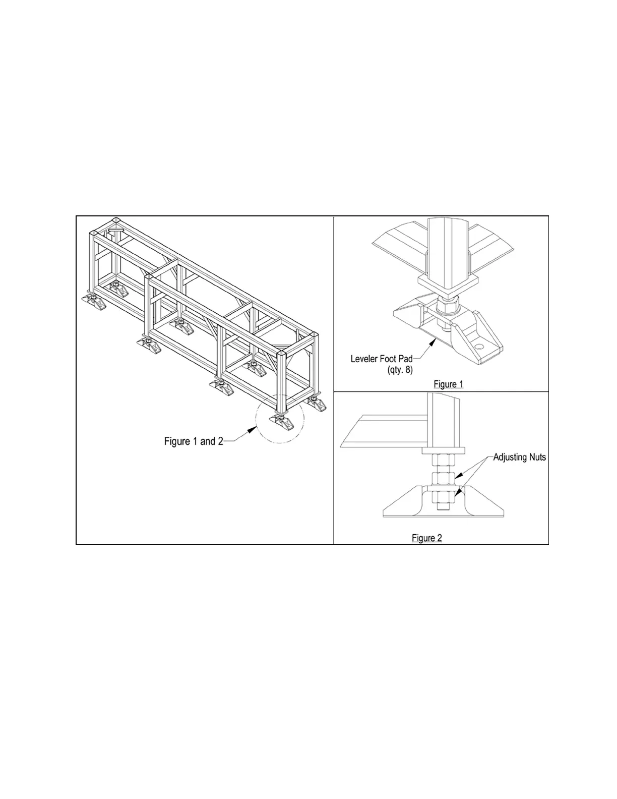3. Vertical height can be adjusted and tightened using nuts and jam nuts on adjustable leveler feet. Refer to Figure