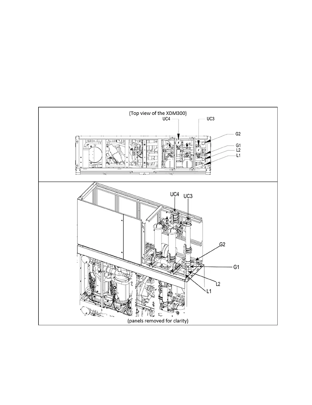 Figure 5.1 Connection Locations (secondary fluid and refrigerant connection locations)