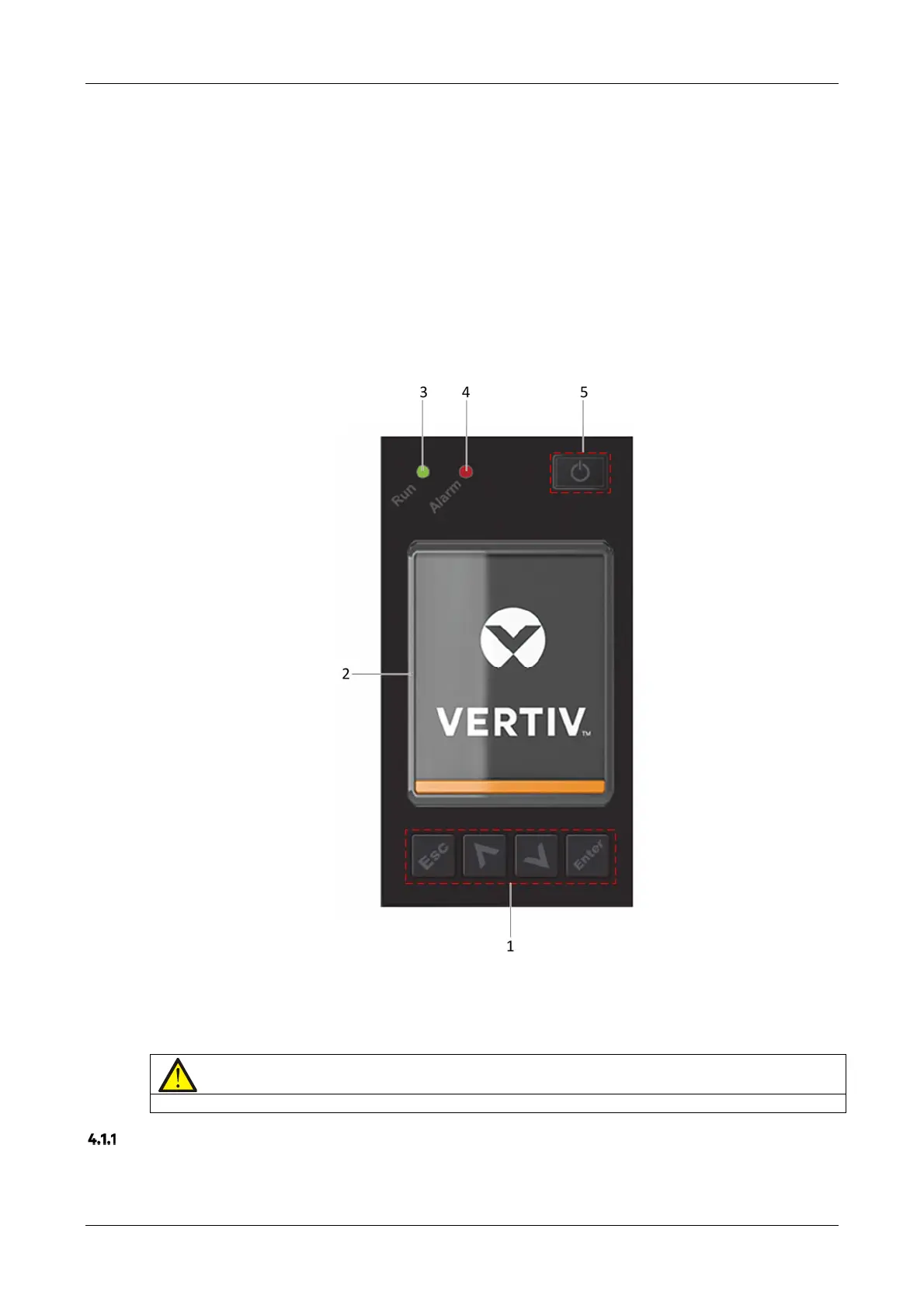 As shown in Figure 4-1, the operator and display panel includes an LCD screen, menu keys, and LED indicators (run