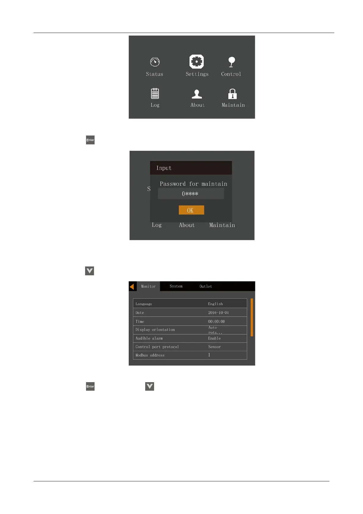 2. Press the key, then press the key to select 'Change settings password', see Figure 5-25.