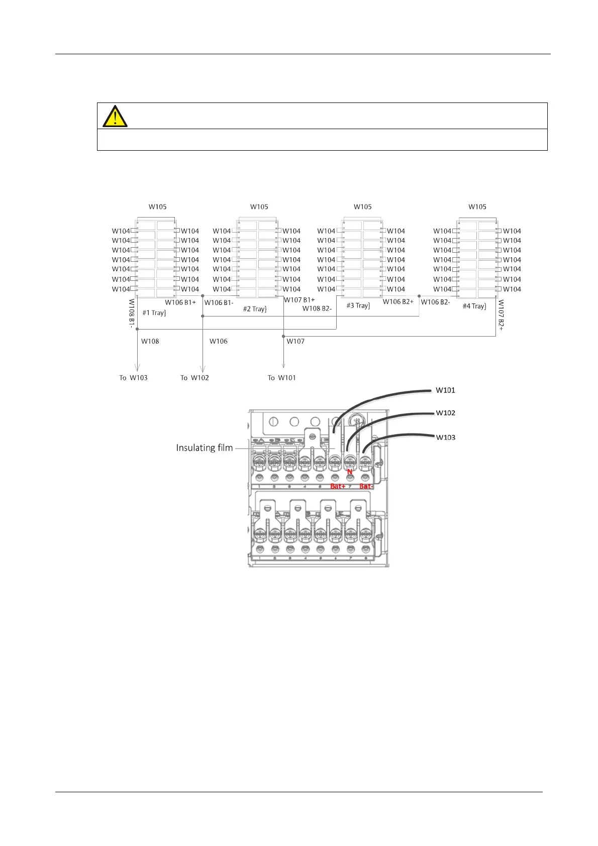 d) Connect the cables W101, W102 and W103 to the Bat+, N and Bat- terminals, respectively.