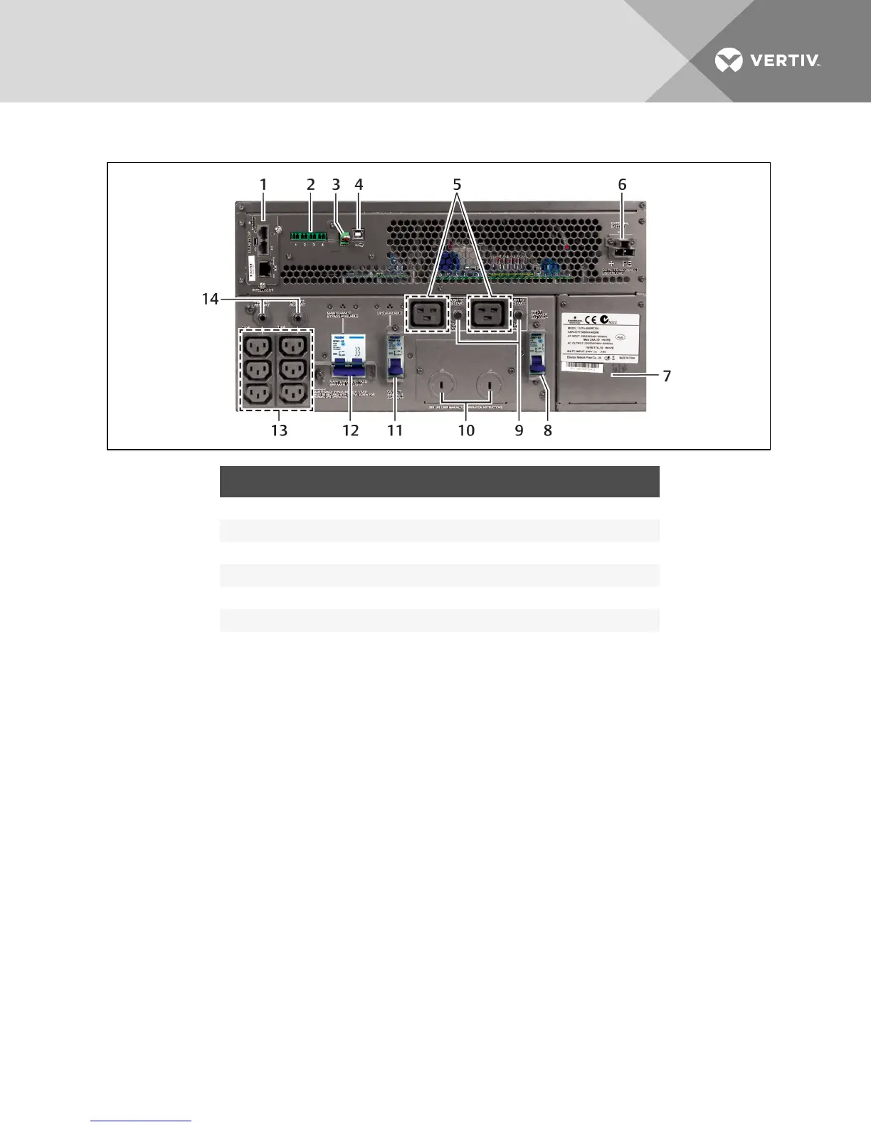 5 C19 output-power receptacles 12 Maintenance bypass breaker