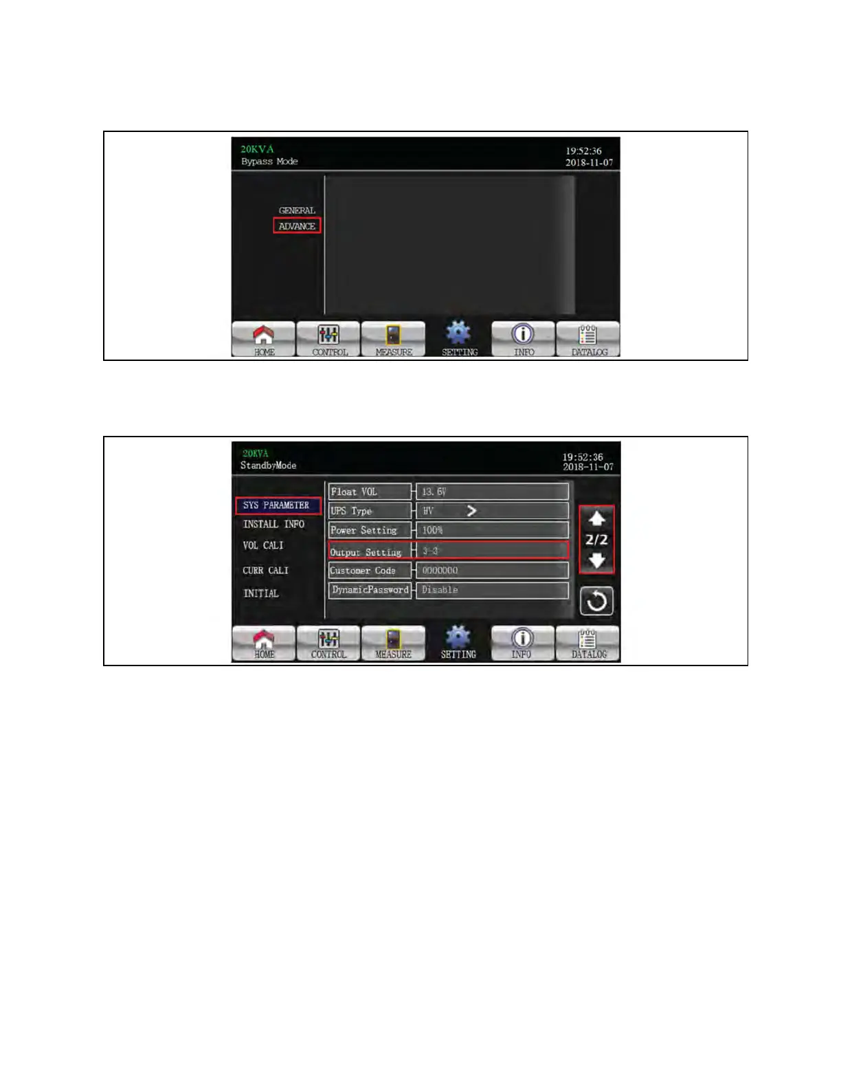 5. Go to SYS PARAMETER (Page 2/2) and modify the Output Setting from 3-3 to 3-1.