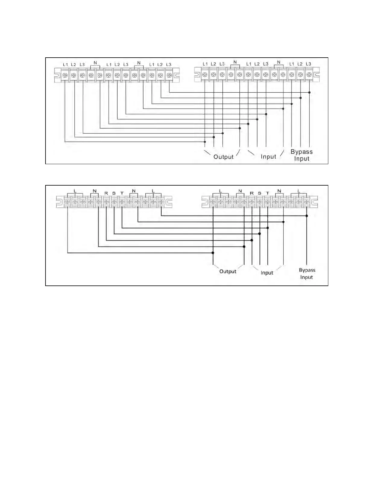 Figure 2.19 Wiring Diagram of Parallel System of 10-15-20kVA with 3-In 3-Out configuration
